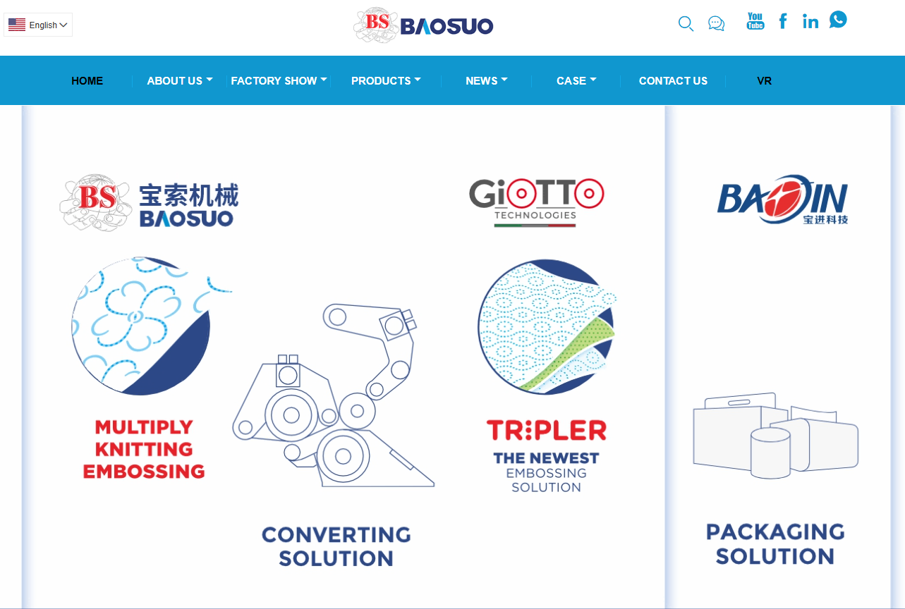Core Logic: The Mega-Mill Integrator. Baosuo is an industry giant whose primary competitive advantage lies in providing massive, end-to-end "Turnkey Solutions." Their engineering scope covers the entire paper supply chain, starting from upstream Yankee cylinder paper-making machines down to downstream converting.